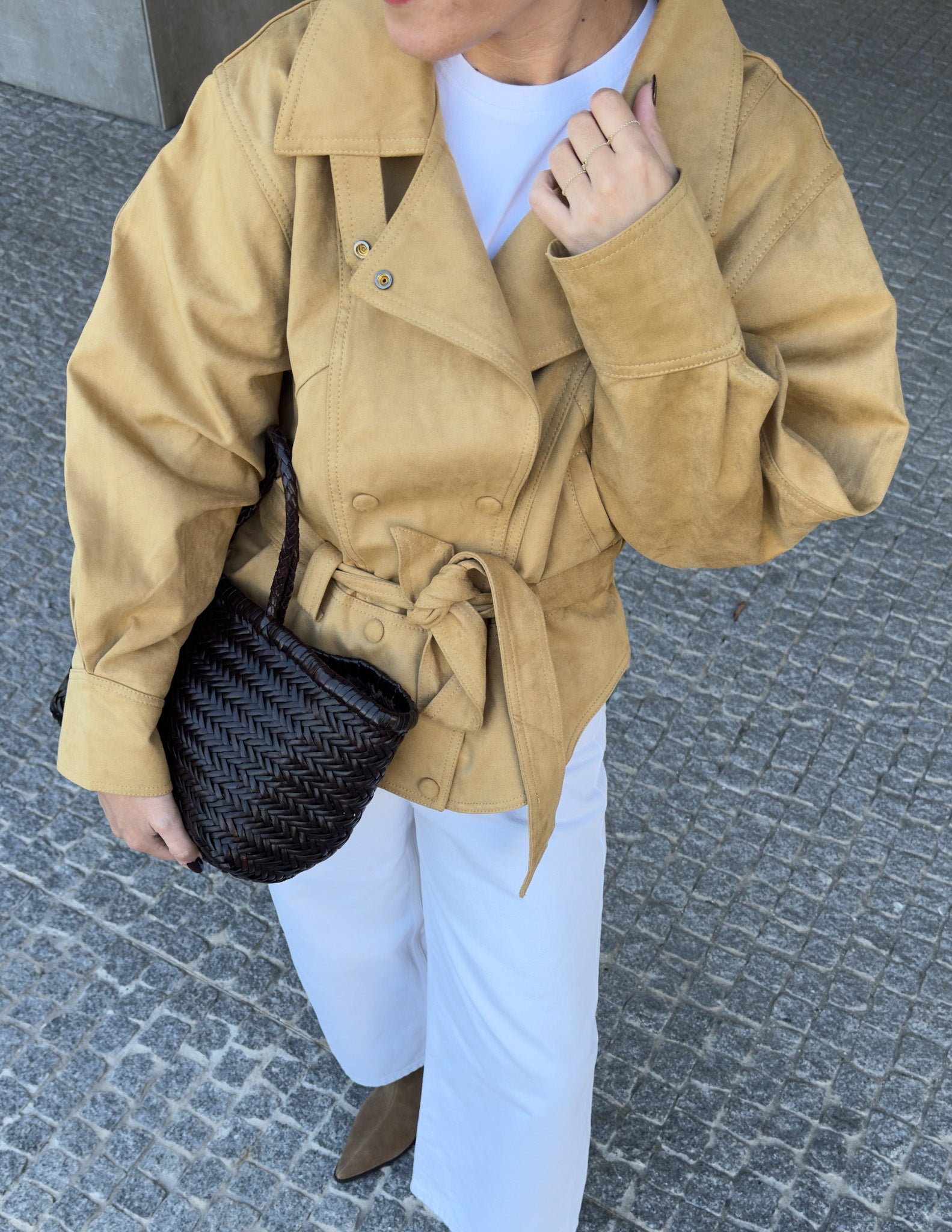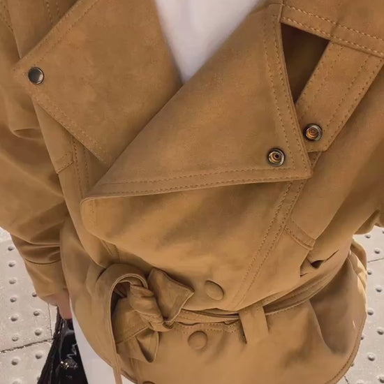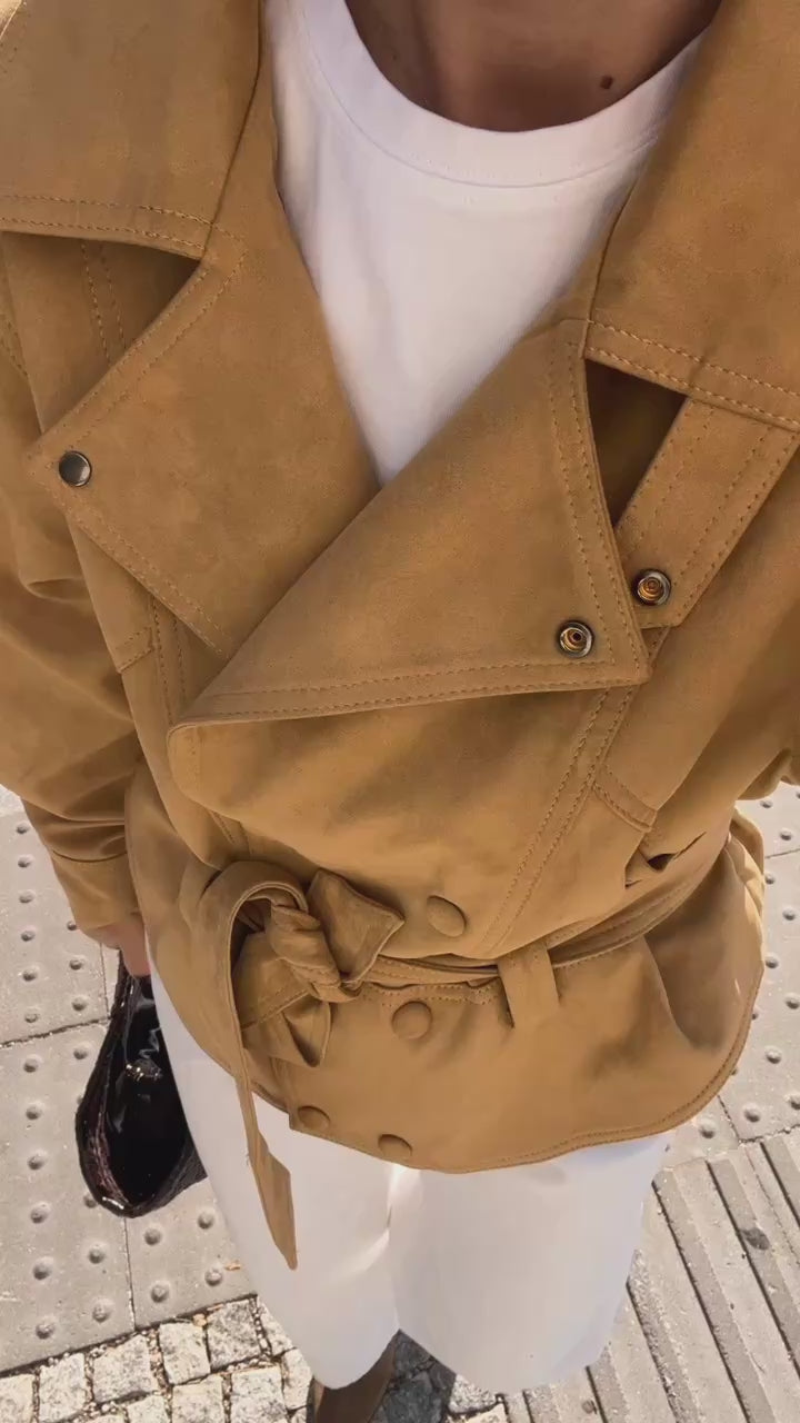 Faux suede jacket in mustard yellow